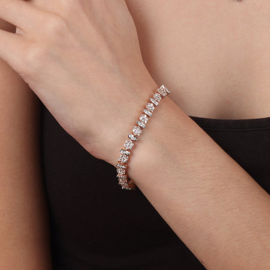 4.3ct Natural Princess Diamond Solid Gold Tennis Bracelet