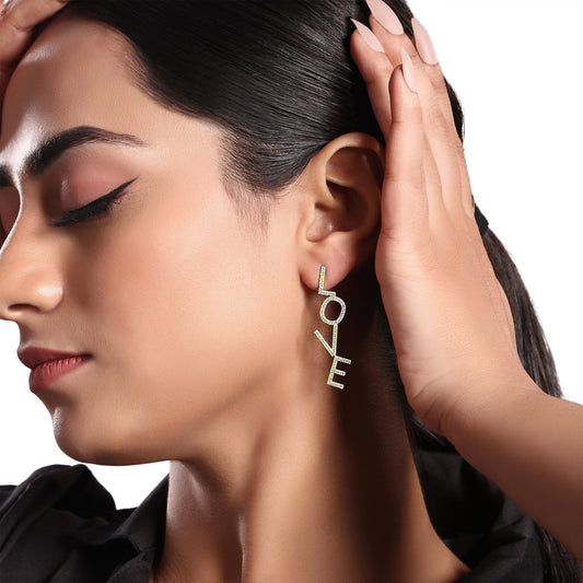 Solid Gold 0.9ct Natural Diamond LOVE Alphabet Drop Dangle Long Earrings