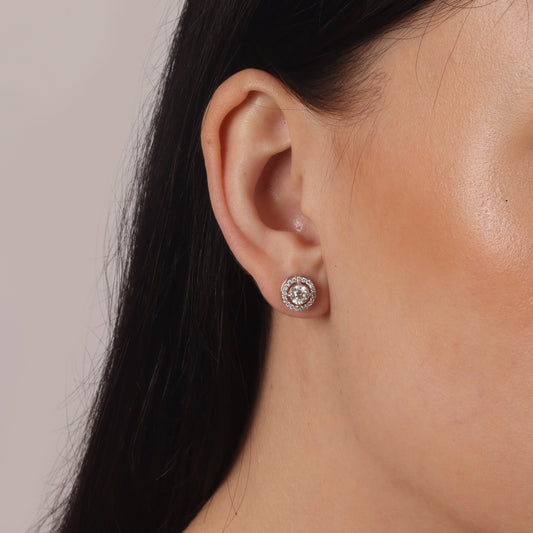 Solid Gold 1.1ct Natural Diamond Halo Solitaire Stud Earrings