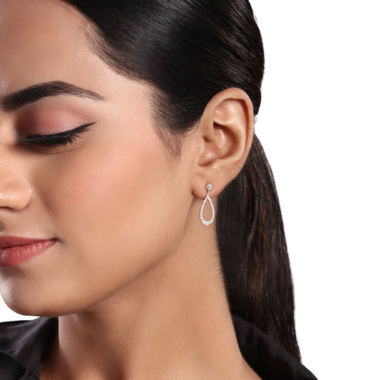 Solid Gold 0.4ct Natural Diamond Oval Circle Drop Earrings