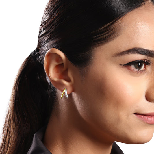Solid Gold 0.4ct Natural Diamond Paperclip Loop Horseshoe Stud Earrings