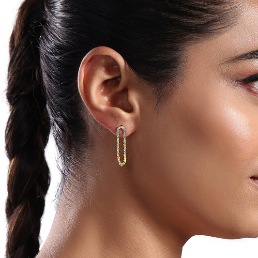Solid Gold 0.4ct Natural Diamond PaperClip Drop Long Dangle Earrings