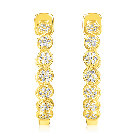 Solid Gold 0.4ct Natural Diamond Bead Bezel Studded Hoop Earrings