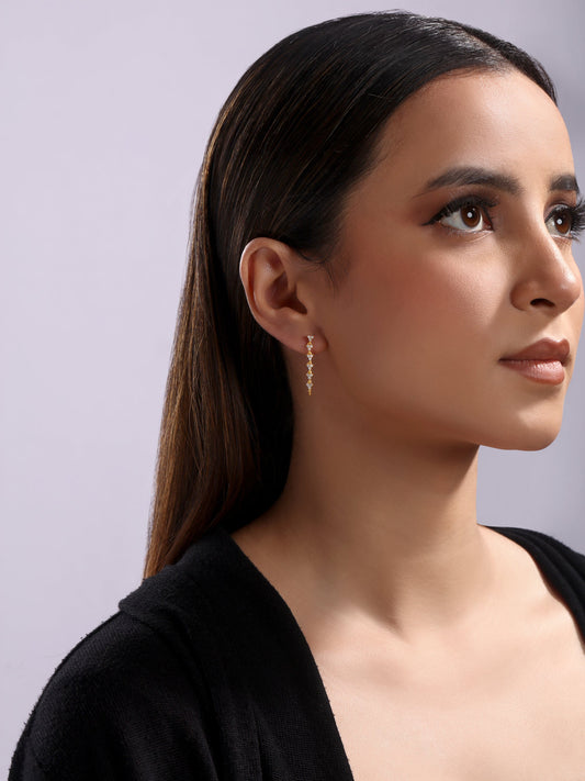 Solid Gold 0.3ct Natural Diamond Trio Chain Loop Drop Stud Earrings