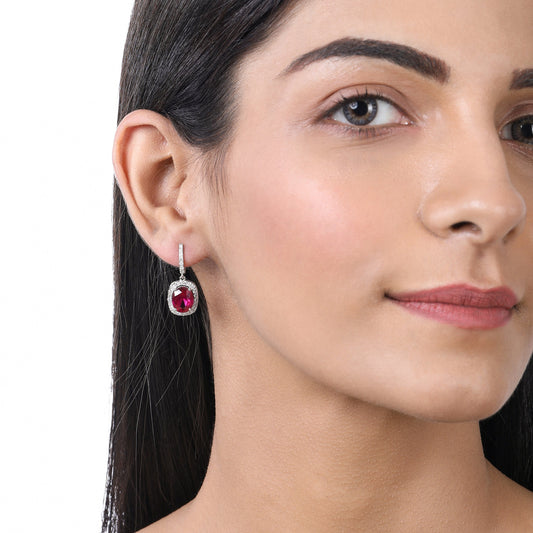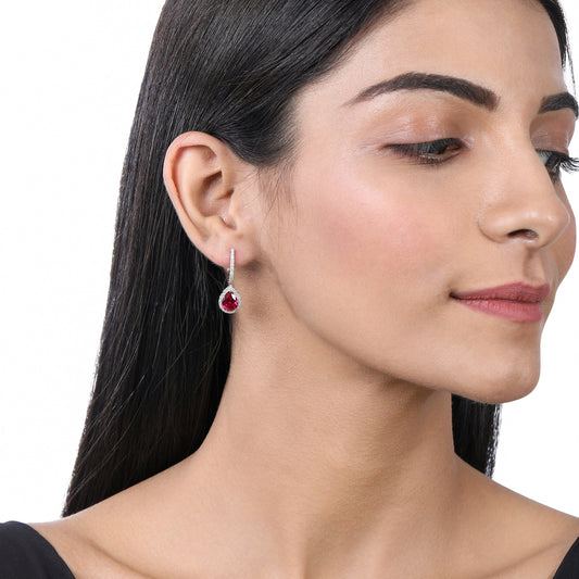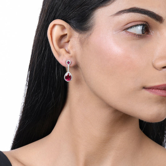 Solid Gold 7.6ct Natural Diamond w/ Ruby Pear Drop Earrings