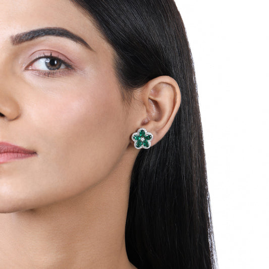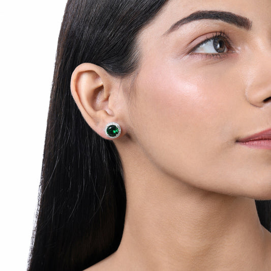 Solid Gold 4.7ct Natural Diamond w Emerald Round Stud Earrings