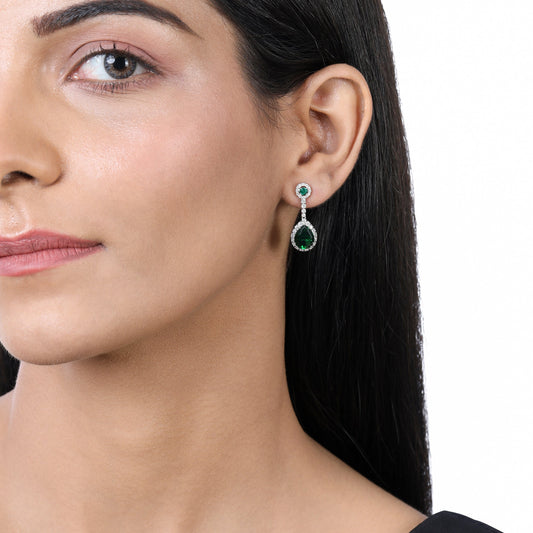 Solid Gold 4.7ct Natural Diamond w/ Emerald Pear Drop Earrings