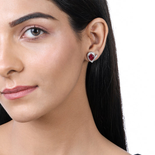 Solid Gold 4.5ct Natural Diamond w/ Ruby V Pear Stud Earrings