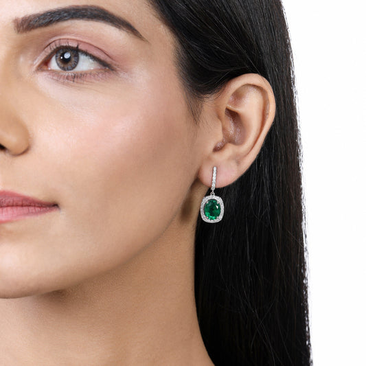 Solid Gold 5.6ct Natural Diamond w/ Emerald Oval Drop Earrings