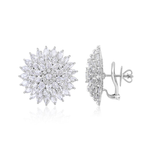 Solid Gold 8.64ct Natural Diamond Rose-Cut Sunflower Stud Earrings