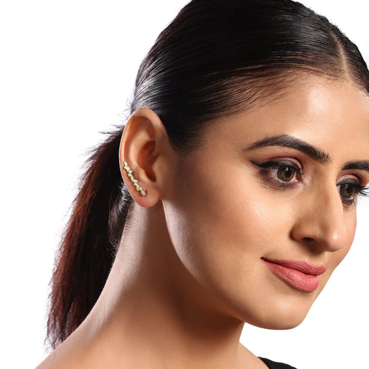 Solid Gold 0.13ct Natural Diamond Leaf Branch Long Climber Earrings