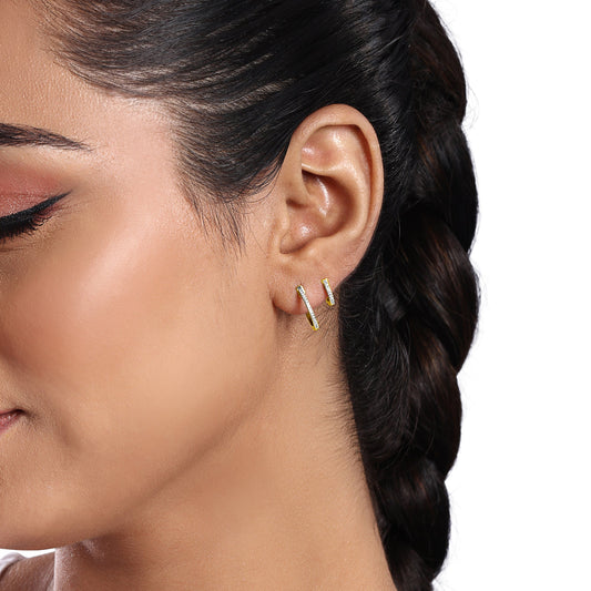 Solid Gold 0.1ct Natural Diamond Double Connect Huggie Earrings