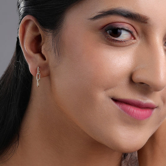 Solid Gold 0.1ct Natural Diamond Paperclip Link Drop Earrings