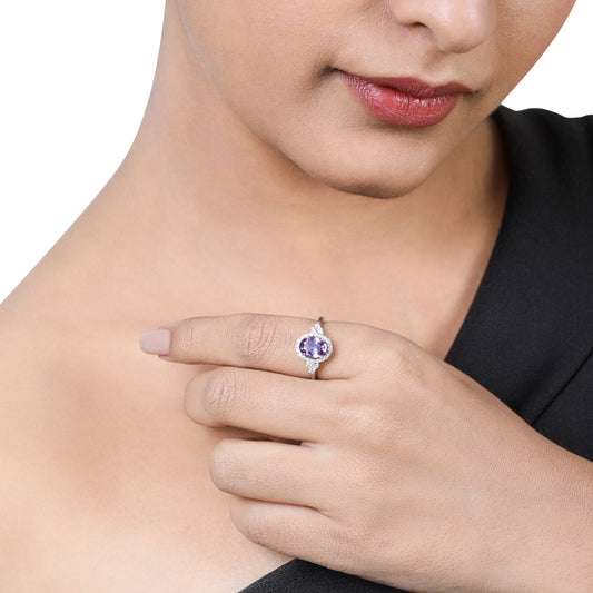 Solid Gold 2.2ct Natural Diamond w/ Amethyst Oval Ring