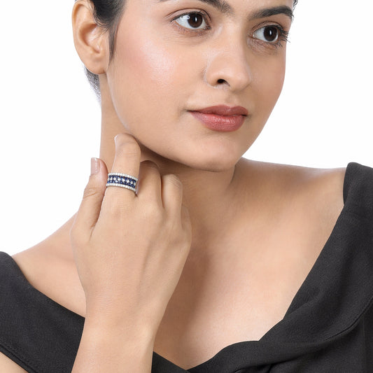 Solid Gold 2ct Natural Diamond w/ Sapphire Band Crown Ring