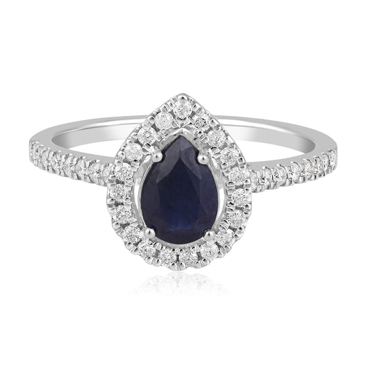 Solid Gold 1ct Natural Sapphire w/ Natural Diamond Pear Solitaire Ring
