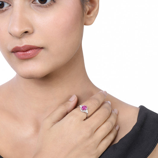 Solid Gold 1.9ct Natural Diamond w/ Ruby Oval Solitaire Ring