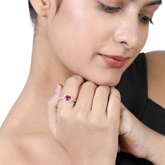 Solid Gold 1.45ct Natural Diamond w/ Ruby Cushion Ring