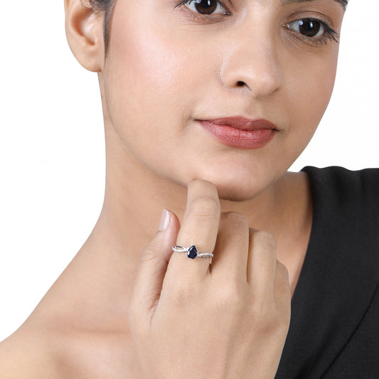 Solid Gold 0.8ct Natural Diamond w/ Sapphire Pear Twist Ring