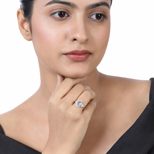 Solid Gold 1.4ct Natural Diamond w/ Aquamarine Cushion Ring