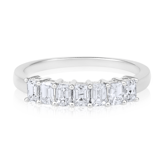 Solid Gold 0.83ct Natural Diamond Emerald Eternity Band Ring