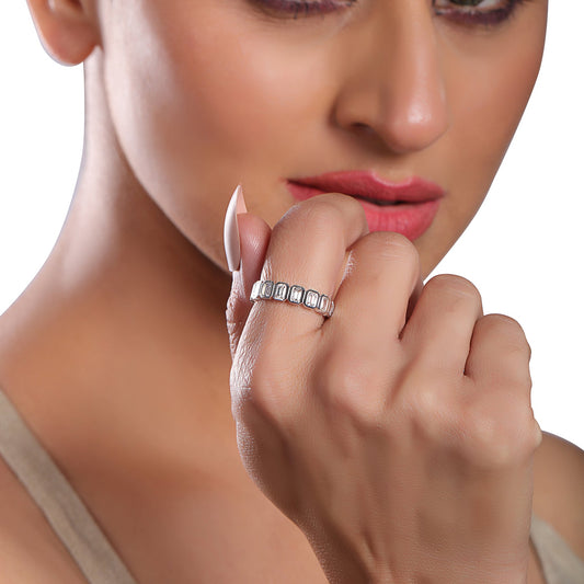 Solid Gold 3ct Natural Diamond Emerald Half Eternity Band Ring