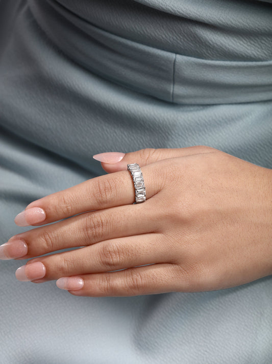 Solid Gold 1.74ct Natural Diamond Emerald Bezel Eternity Band Ring
