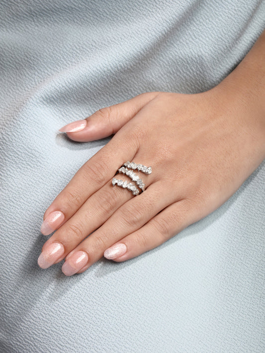 Solid Gold 1.8ct Natural Diamond Pear Emerald Crisscross Wrap Ring