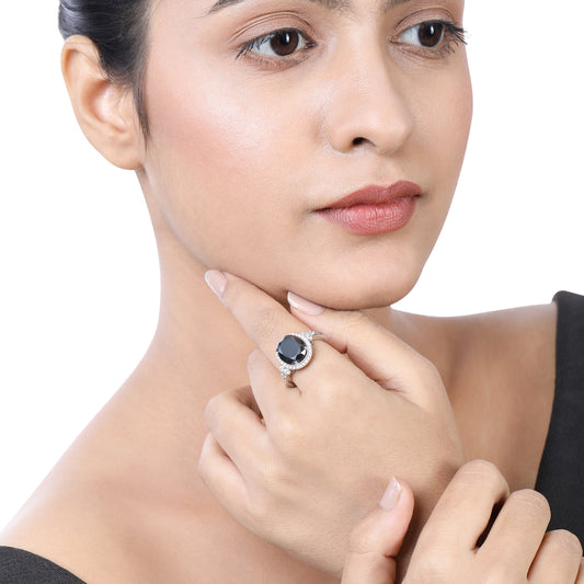 Solid Gold 5.43ct Natural Diamond w/ Black Diamond Round Ring