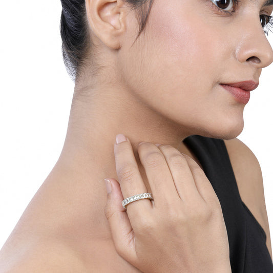 Solid Gold 4.4ct Emerald Natural Diamond Eternity Band Ring