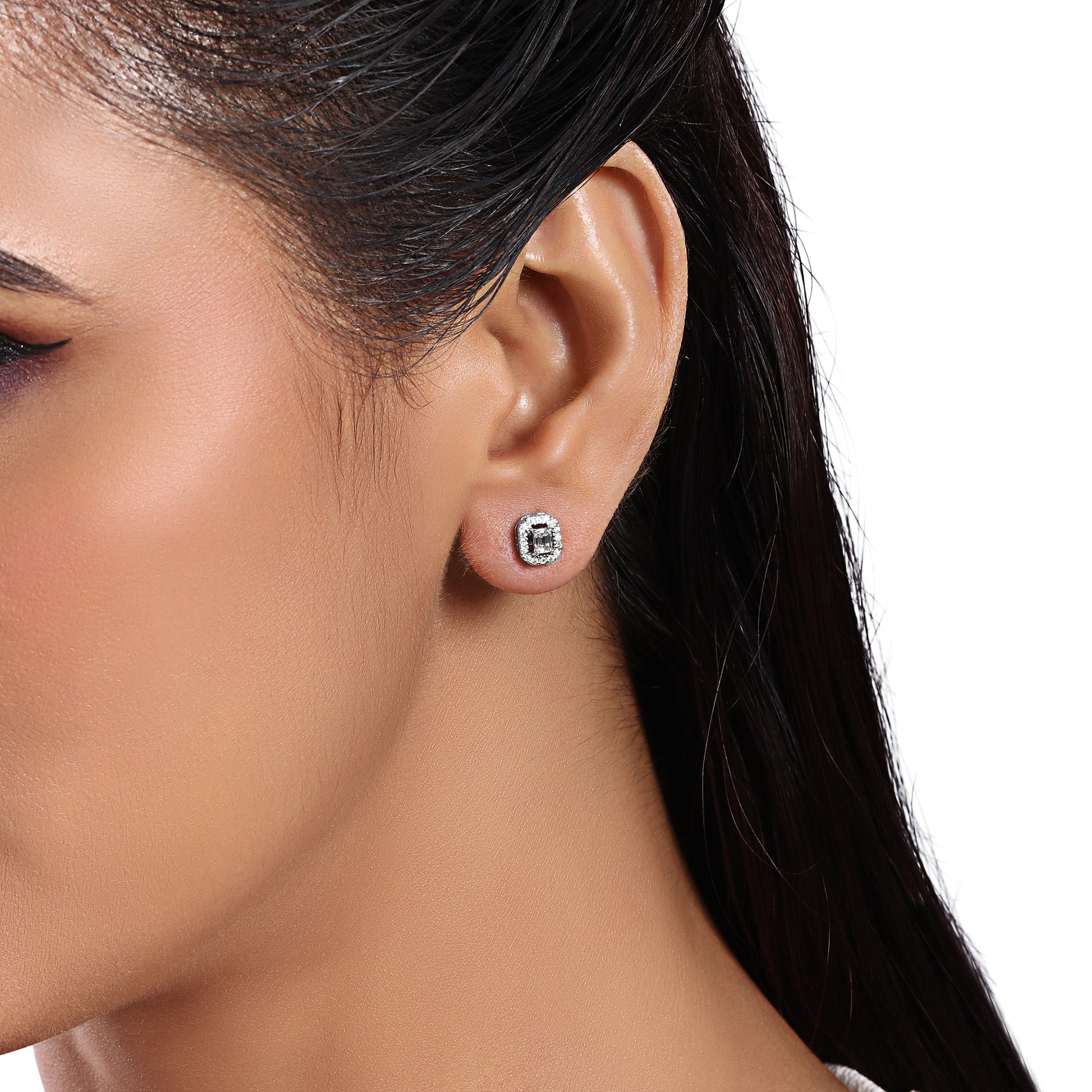 Crafted in 1.52 grams of White Gold, the earrings features 34 stones of Natural Diamonds with a total weight of 0.38 carats.