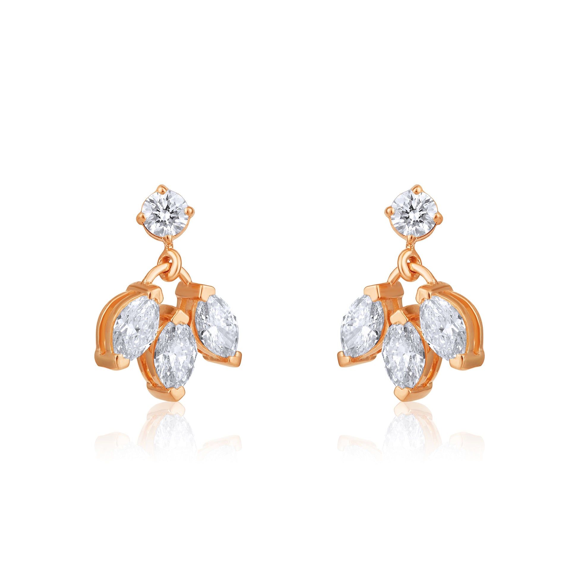 Crafted in 1.29 grams of Rose Gold, the earrings features 8 stones of Natural Diamonds with a total weight of 0.55 carats.