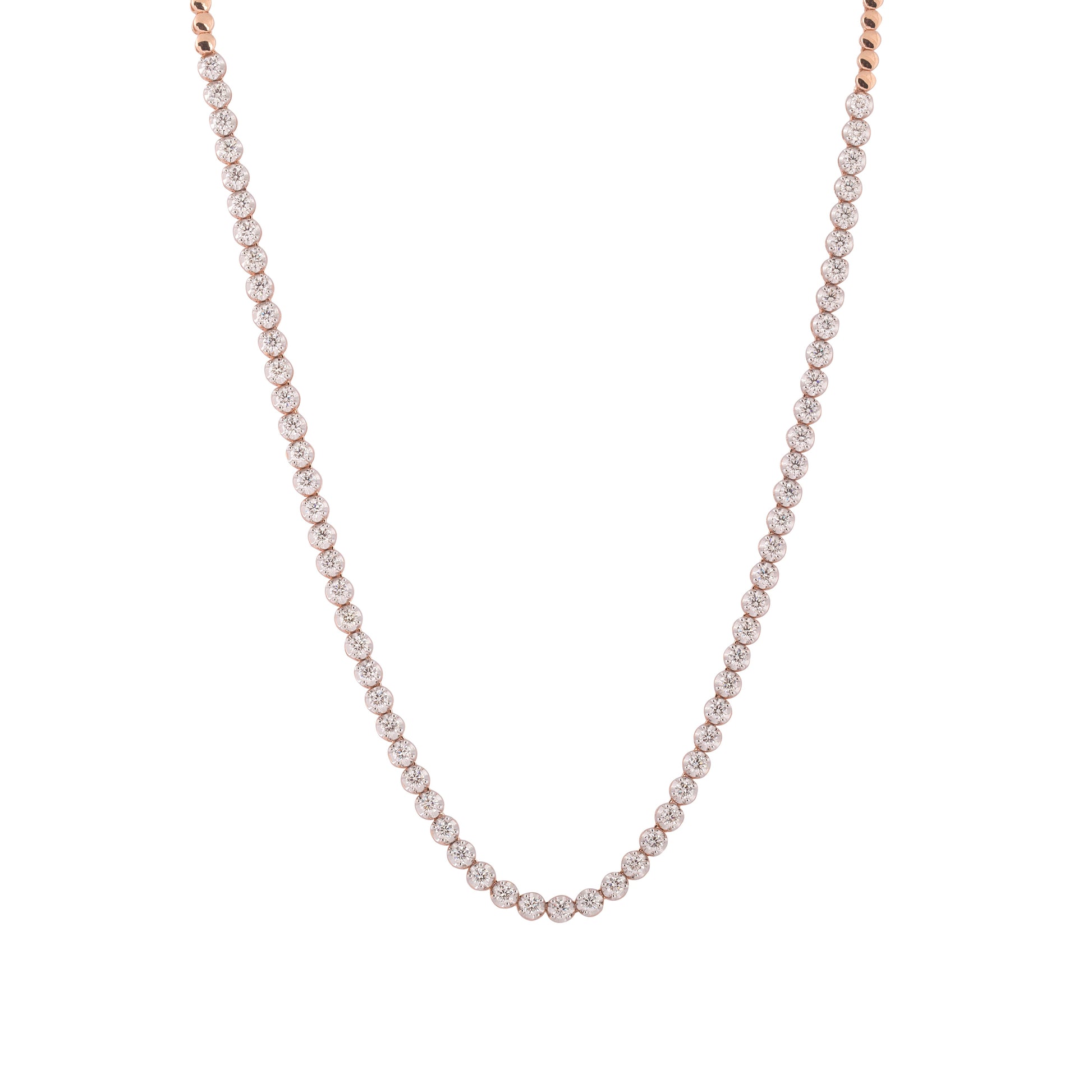 Crafted in 19.46 grams of Rose Gold, the necklace features 65 stones of Natural Diamonds with a total weight of 3.69 carats.