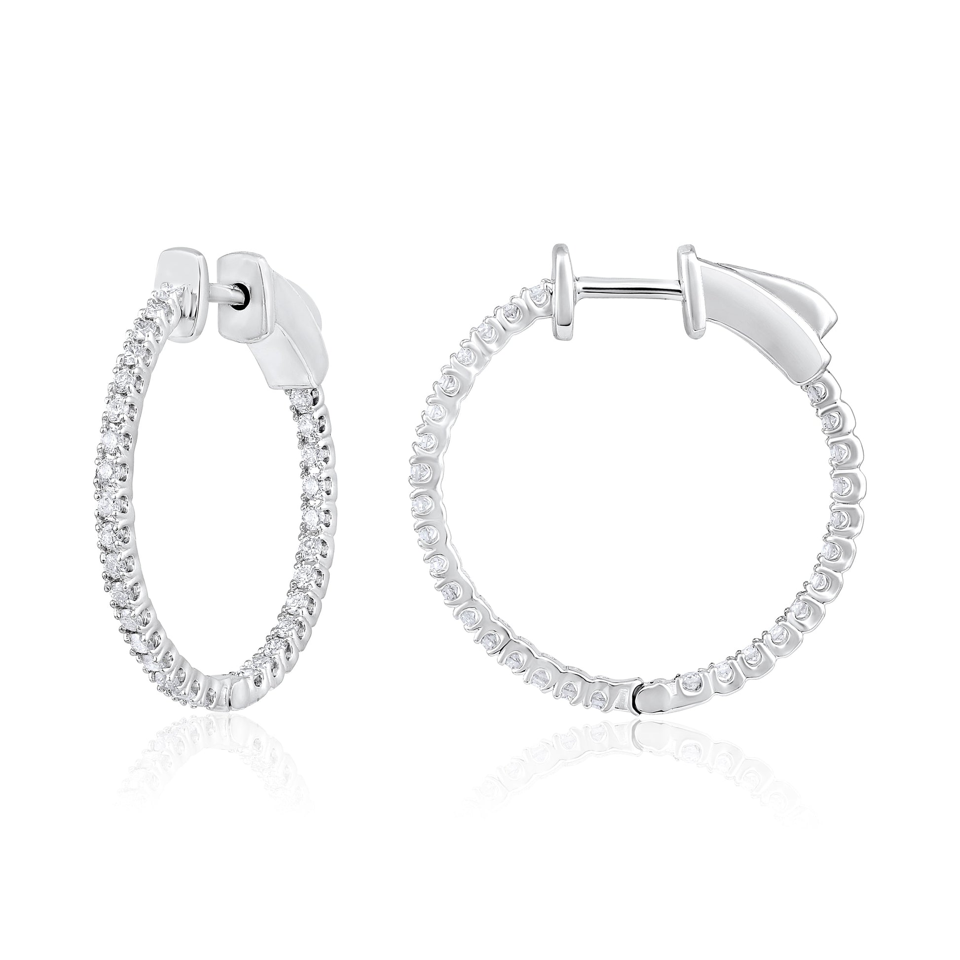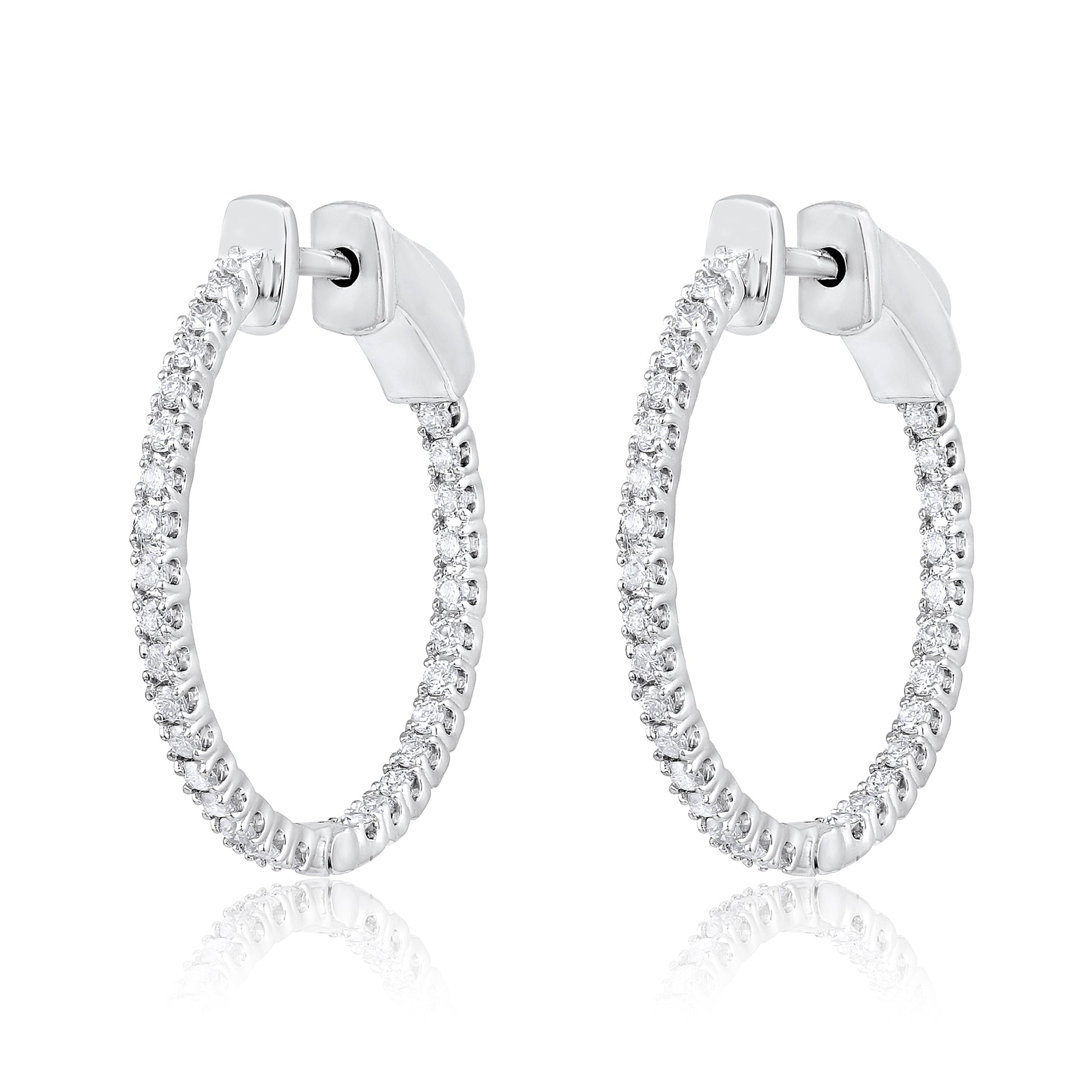 Crafted in 2.72 grams of White Gold, the earrings features 60 stones of Natural Diamonds with a total weight of 0.4 carats.