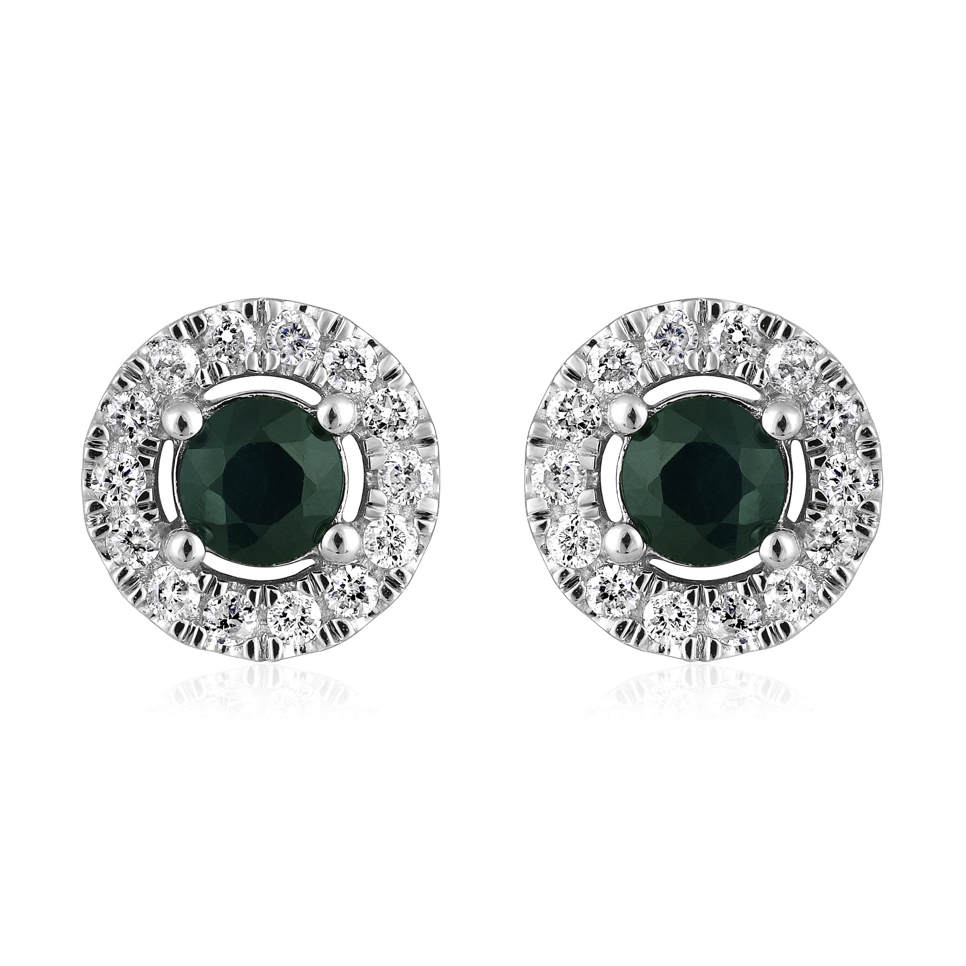 Crafted in 2.16 grams of White Gold, the earrings features 28 stones of Natural Diamonds with a total weight of 0.23 carats �and 2 stones of Natural Sapphire with a total weight of 0.49 carats.