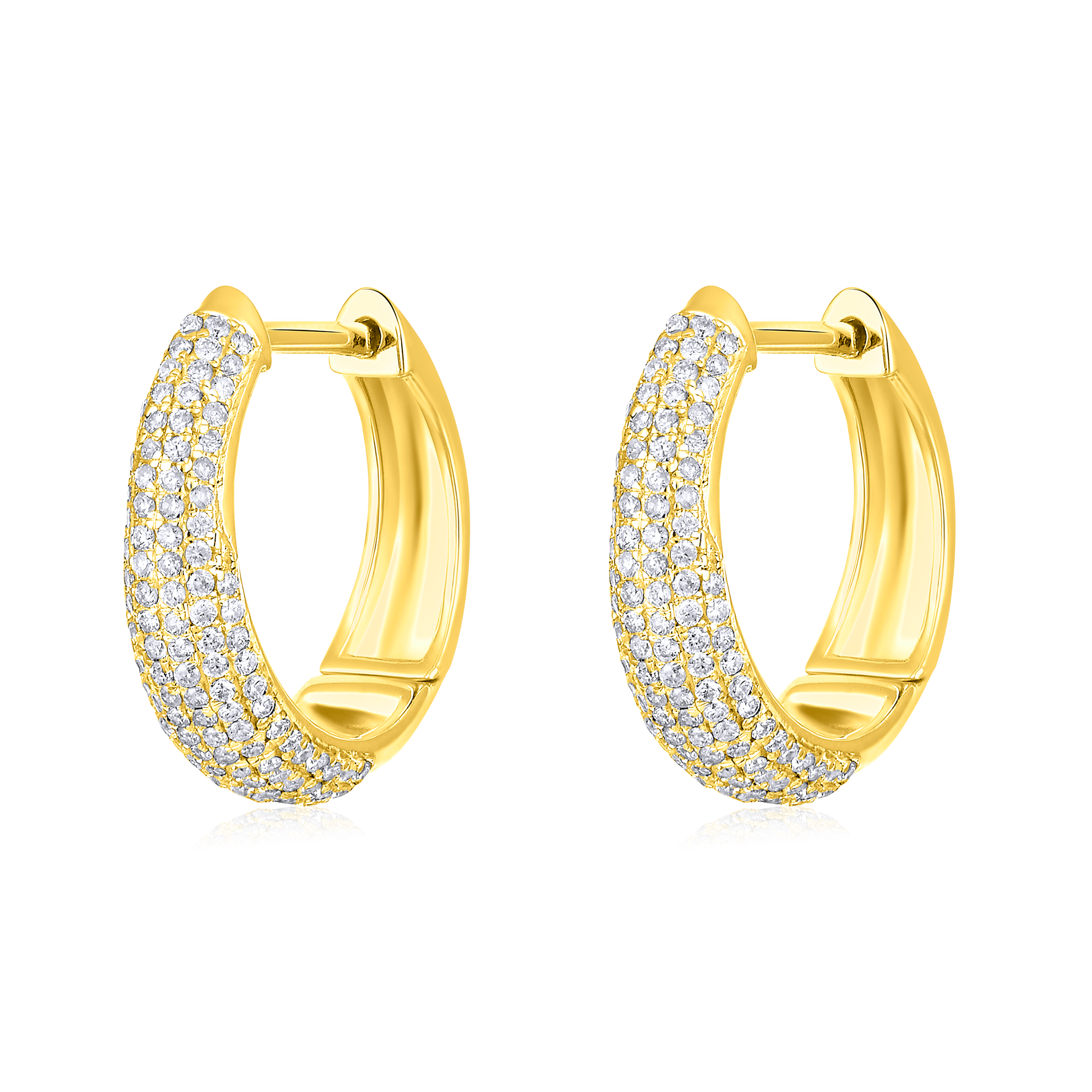 Crafted in 2.41 grams of Yellow Gold, the earrings features 240 stones of Natural Diamonds with a total weight of 0.48 carats.
