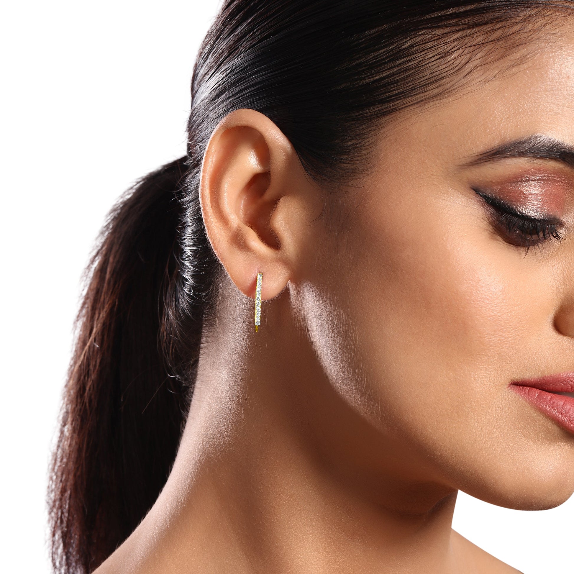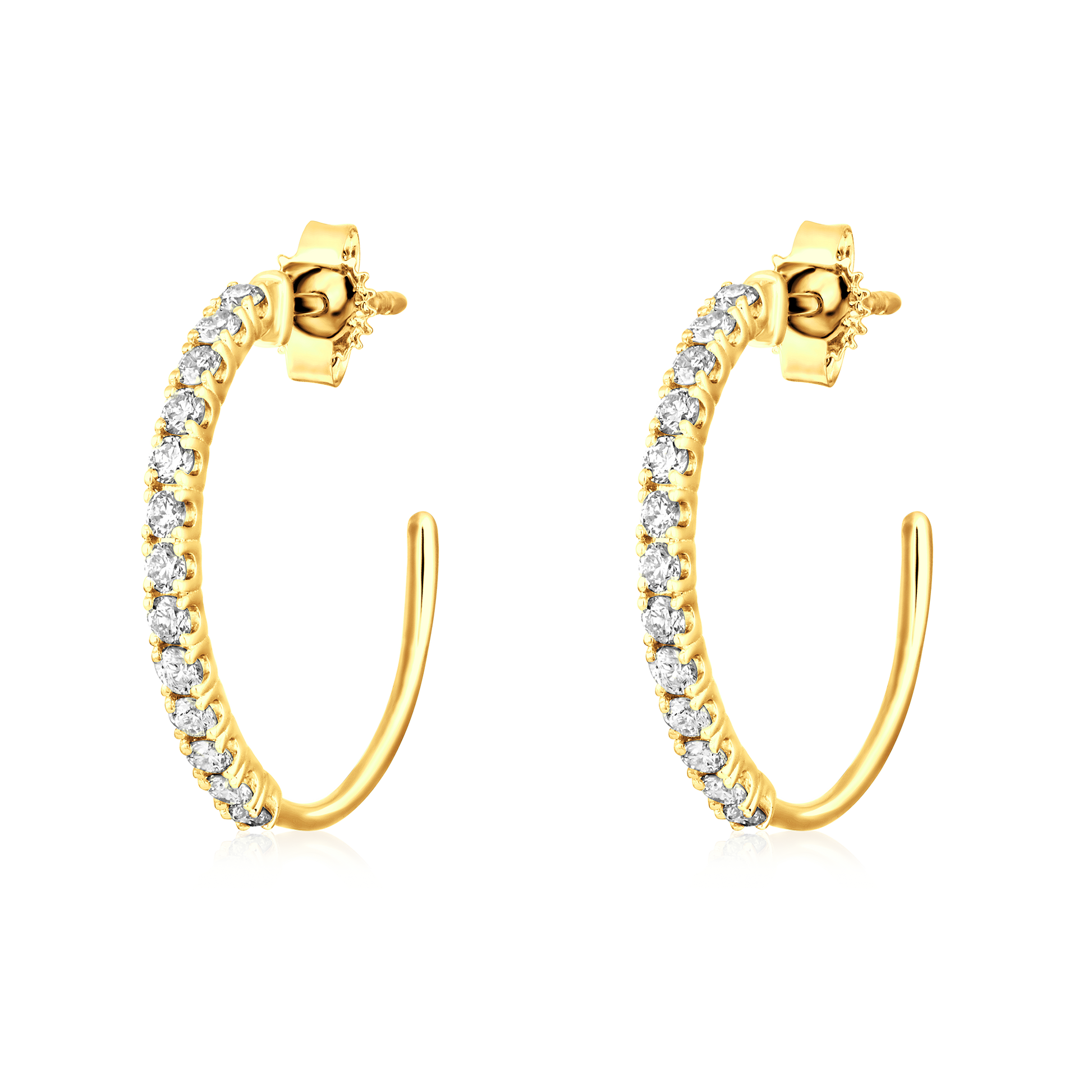 Crafted in 1.71 grams of Yellow Gold, the earrings features 26 stones of Natural Diamonds with a total weight of 0.49 carats.