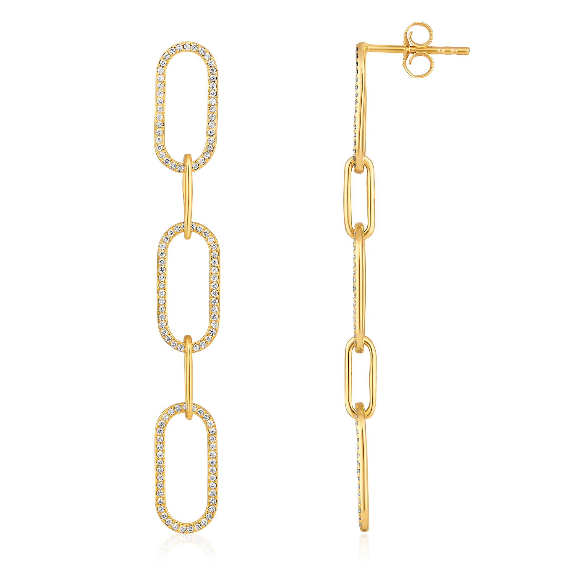 Crafted in 3.01 grams of Yellow Gold, the earrings features 234 stones of Natural Diamonds with a total weight of 0.39 carats.