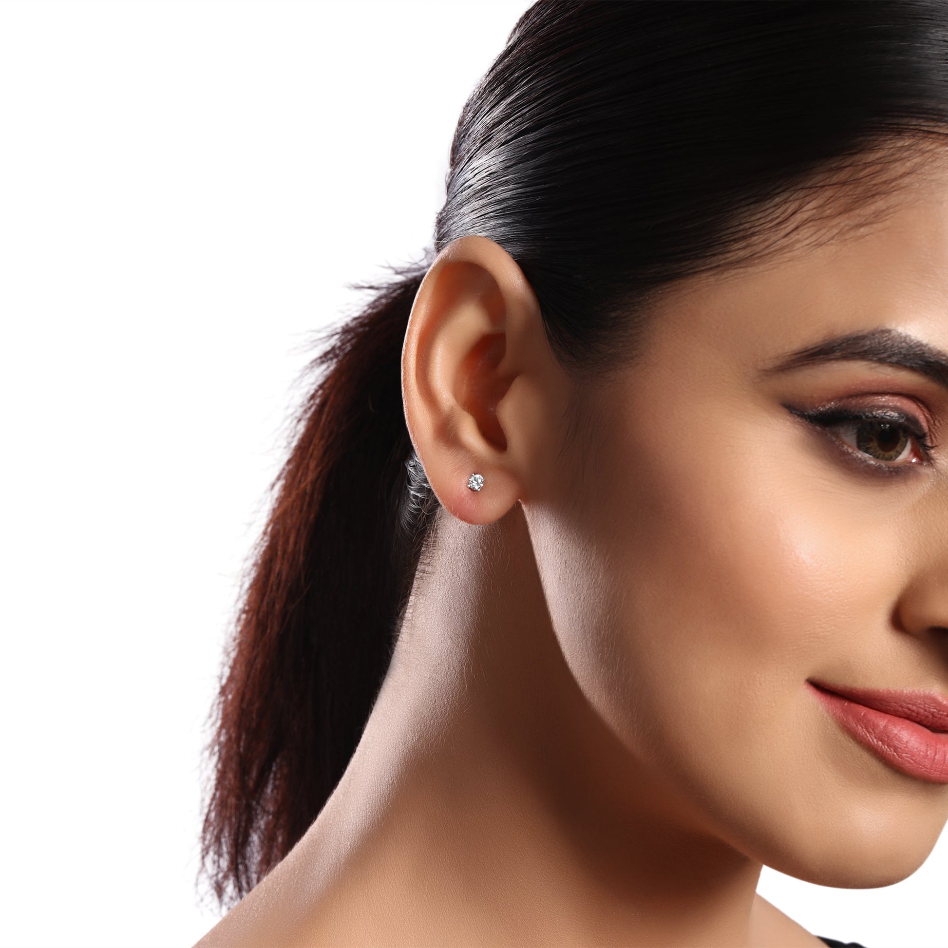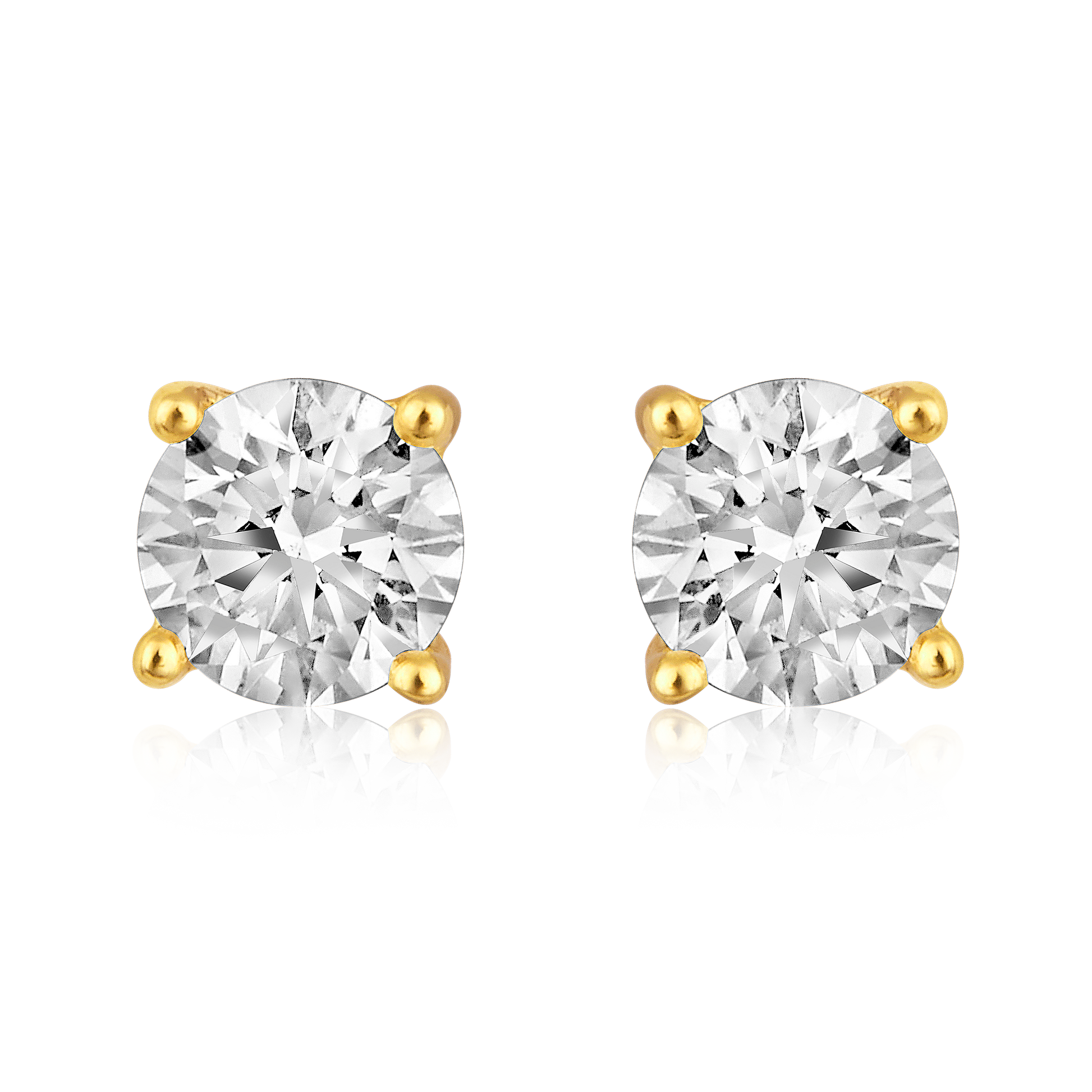 Crafted in 0.69 grams of Yellow Gold, the earrings features 2 stones of Natural Diamonds with a total weight of 0.45 carats.