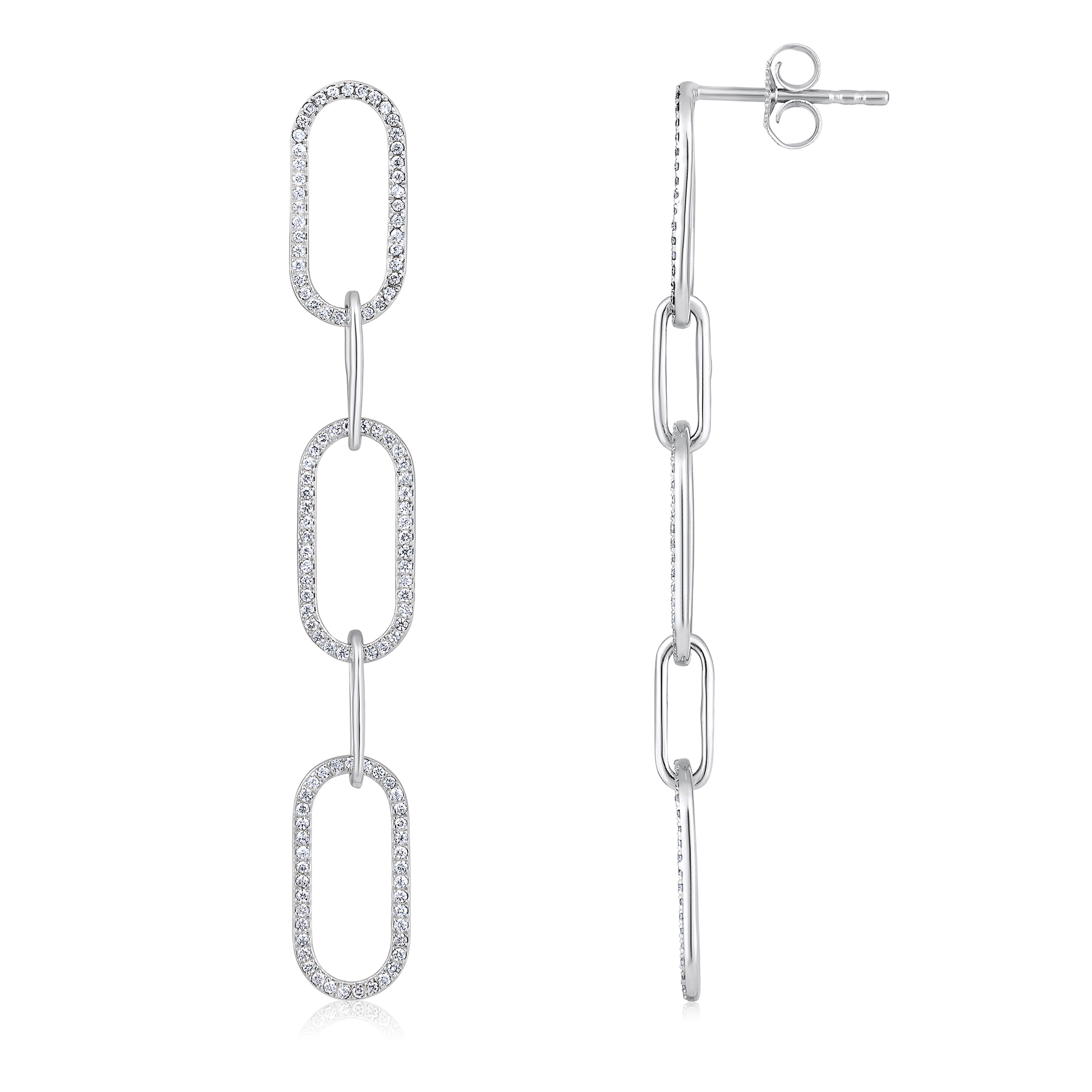 Crafted in 3.02 grams of White Gold, the earrings features 234 stones of Natural Diamonds with a total weight of 0.38 carats.
