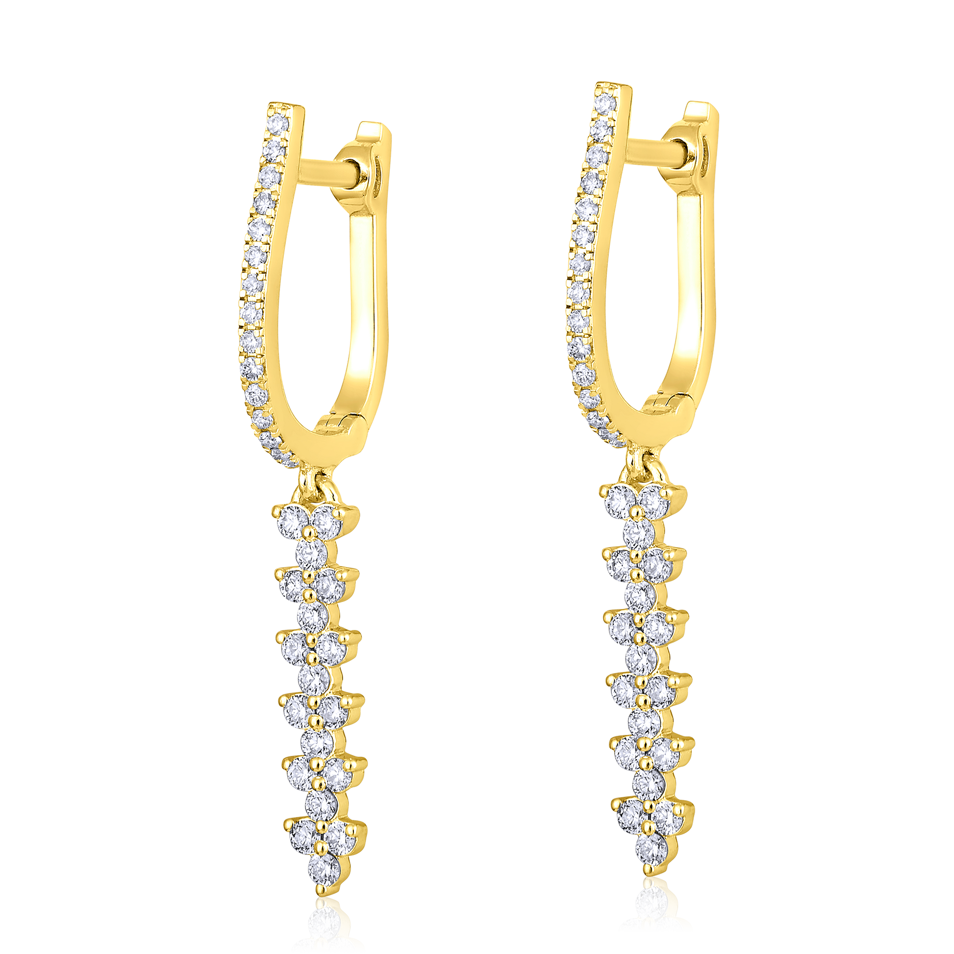 Crafted in 2.23 grams of Yellow Gold, the earrings features 66 stones of Natural Diamonds with a total weight of 0.45 carats.