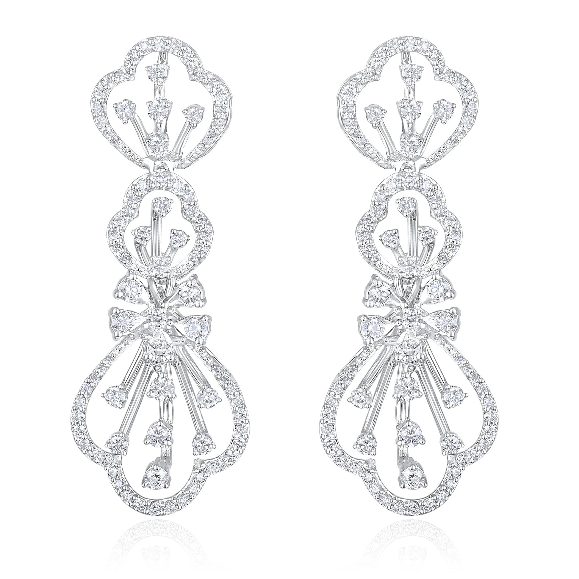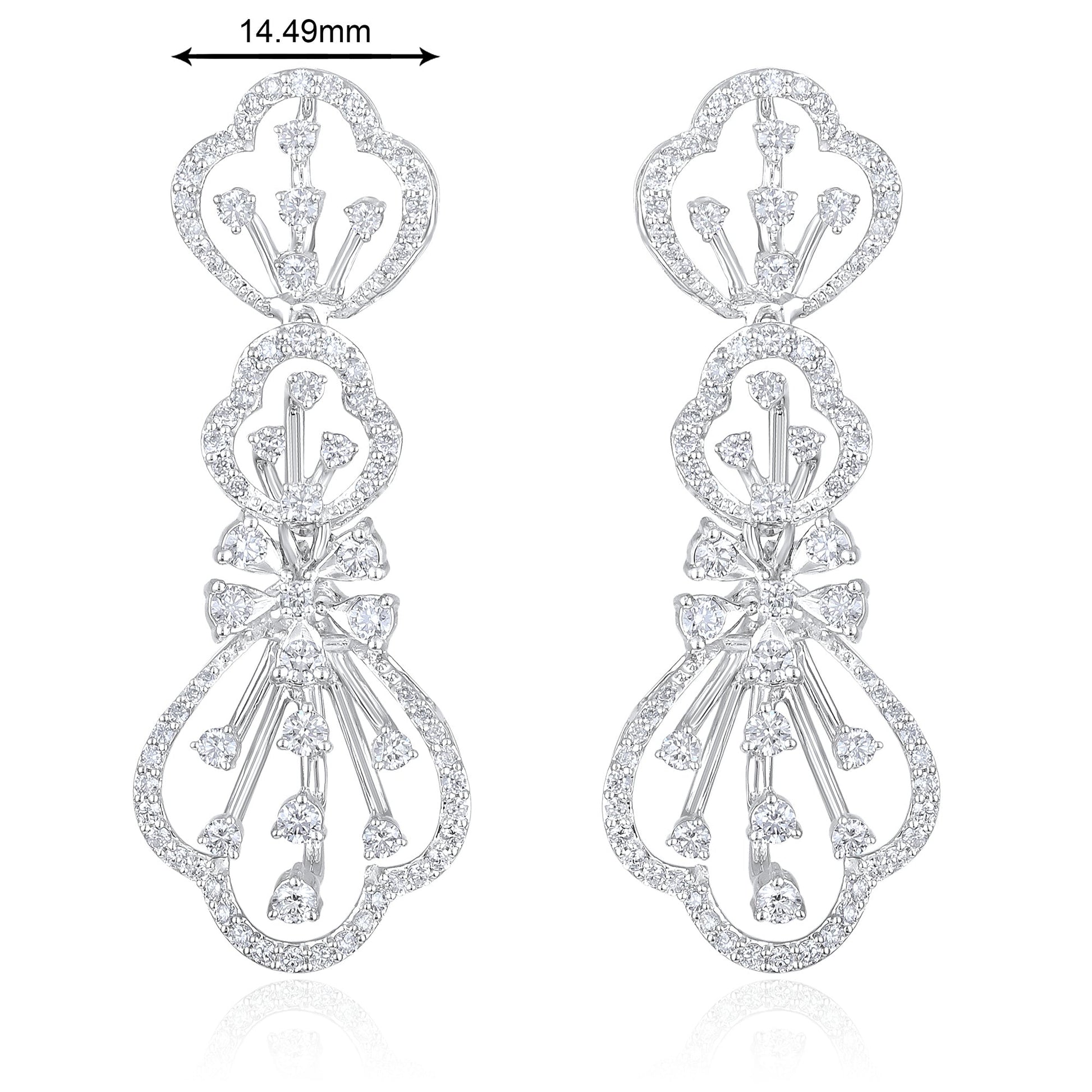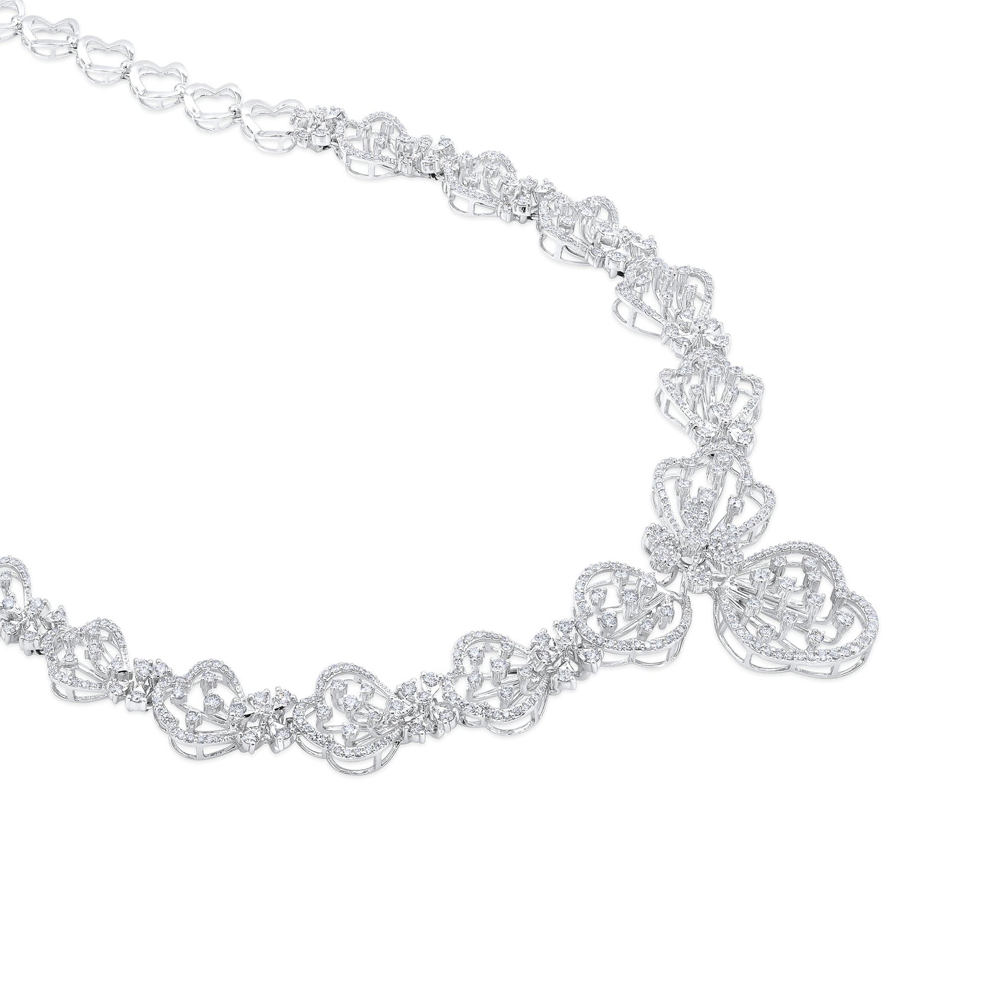 Crafted in 51.02 grams of White Gold, the necklace and earrings jewelry set features 673 stones of Natural Diamonds with a total weight of 6.29 carats.