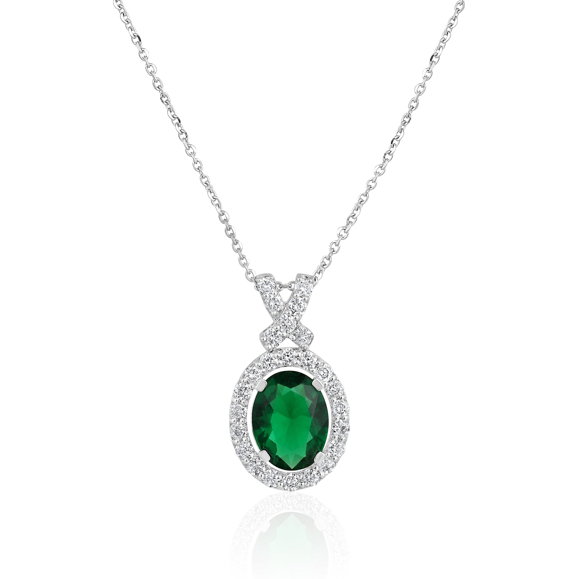 Crafted in 3.33 grams of White Gold, the necklace features 25 stones of Natural Diamonds with a total weight of 0.46 carats and 1 stone of Emerald Gemstone with a total weight of 1.35 carats.