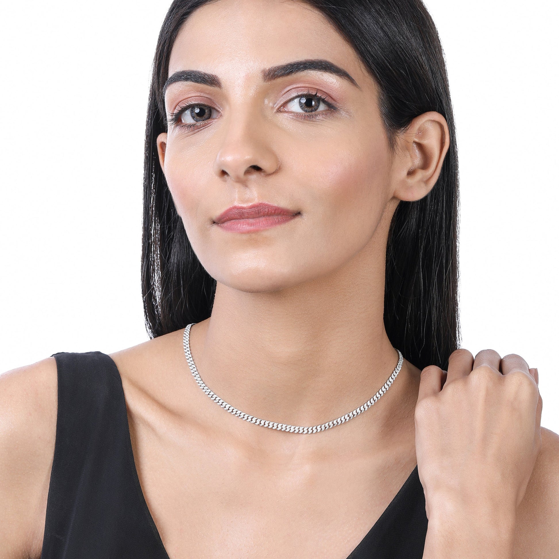 Crafted in 12.21 grams of White Gold, the necklace features 930 stones of Natural Diamonds with a total weight of 1.78 carats.
