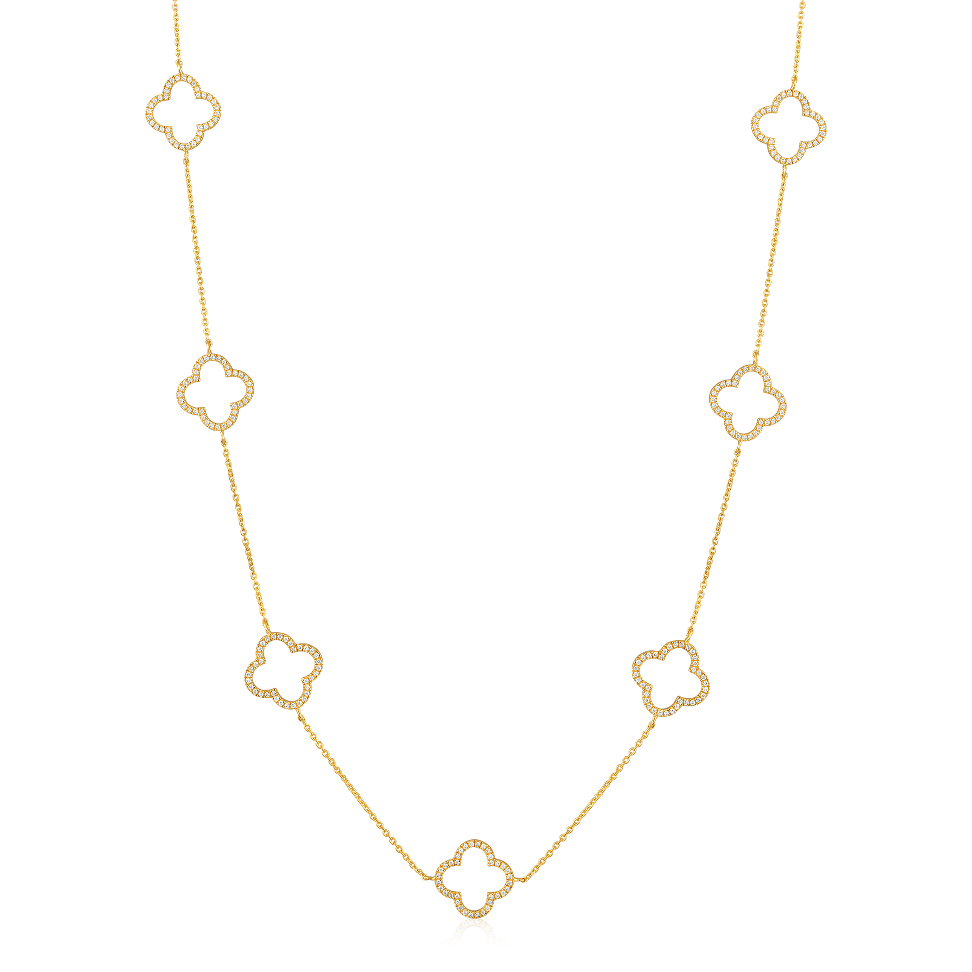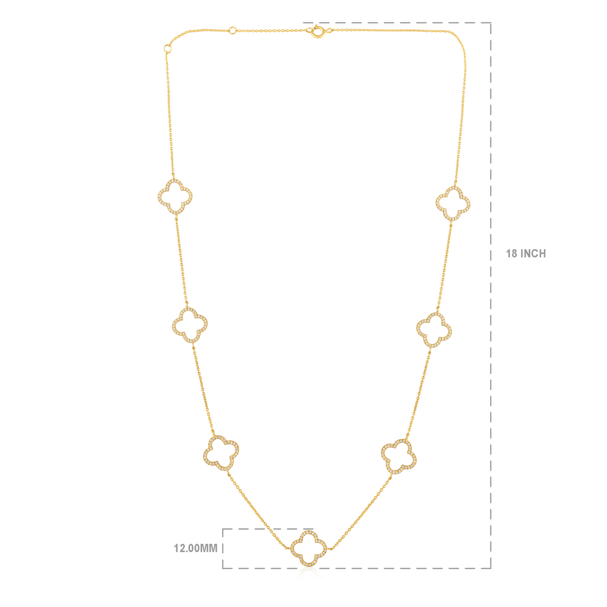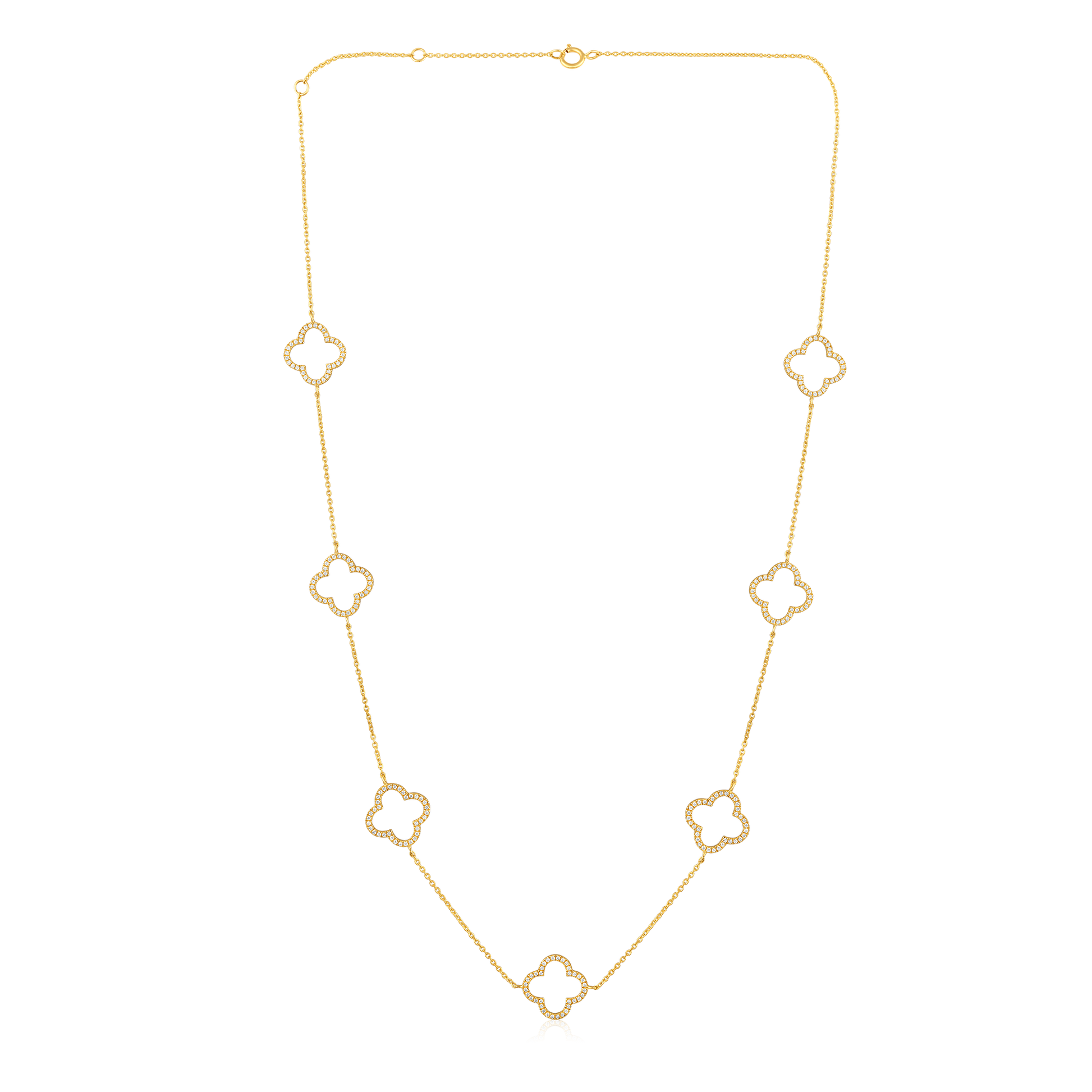 Crafted in 5.04 grams of Yellow Gold, the necklace features 252 stones of Natural Diamonds with a total weight of 0.44 carats.
