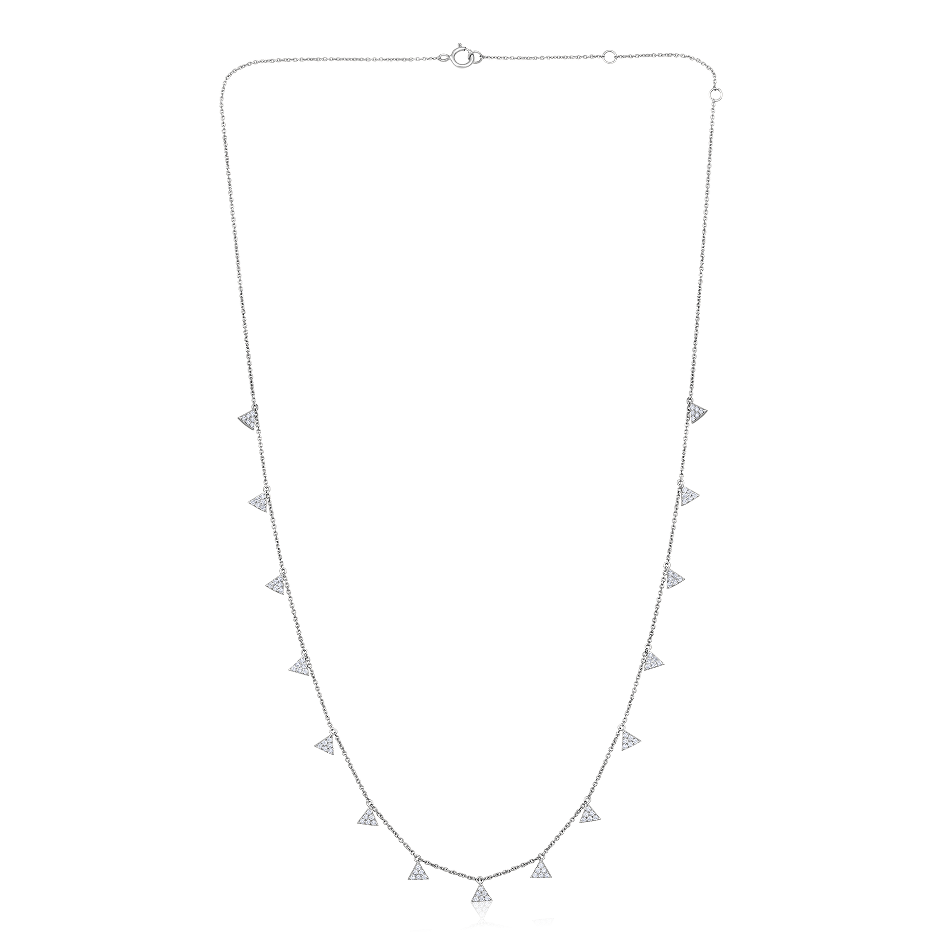Crafted in 2.7 grams of White Gold, the necklace features 90 stones of Natural Diamonds with a total weight of 0.43 carats.