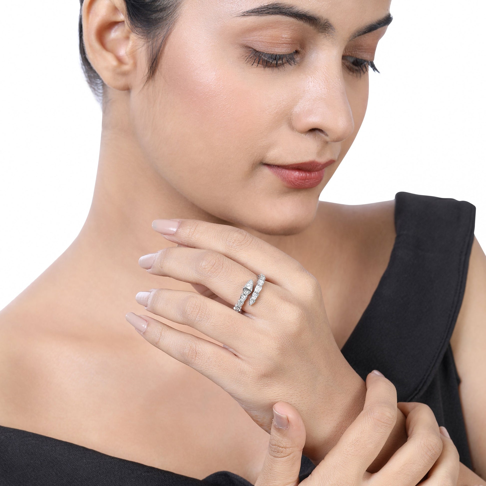 Crafted in 3.56 grams of White Gold, the ring features 40 stones of Natural Diamonds with a total weight of 0.702 carats.