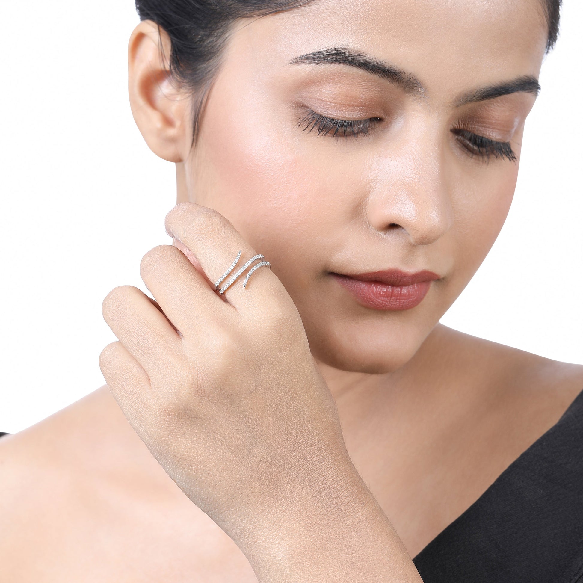 Crafted in 2.1 grams of White Gold, the ring features 47 stones of Natural Diamonds with a total weight of 0.31 carats.