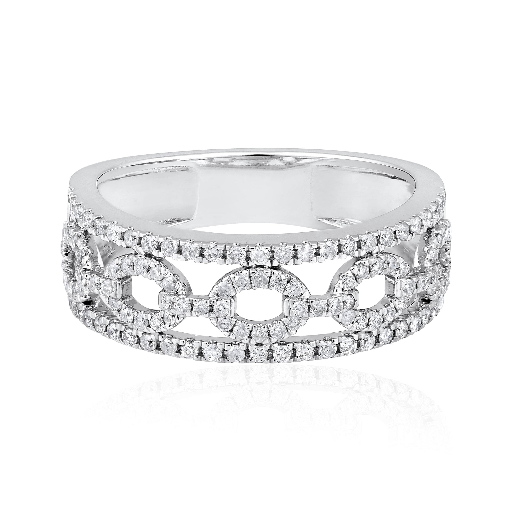 Crafted in 4.56 grams of White Gold, the ring features 118 stones of Natural Diamonds with a total weight of 0.51 carats.