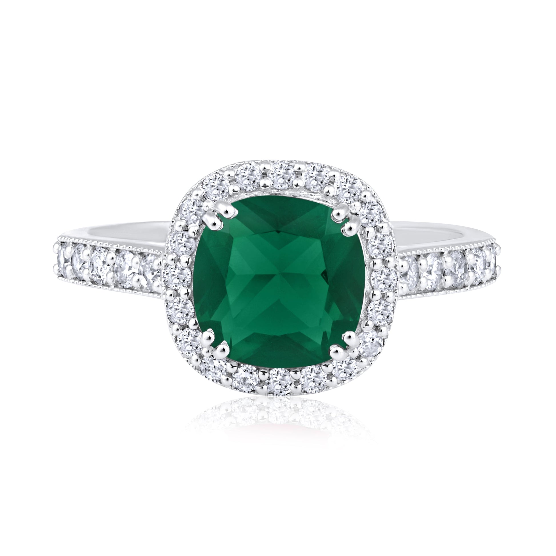 Crafted in 3.44 grams of White Gold, the ring features 30 stones of Natural Diamonds with a total weight of 0.46 carats and 1 stone of Emerald Gemstone with a total weight of 1.65 carats.